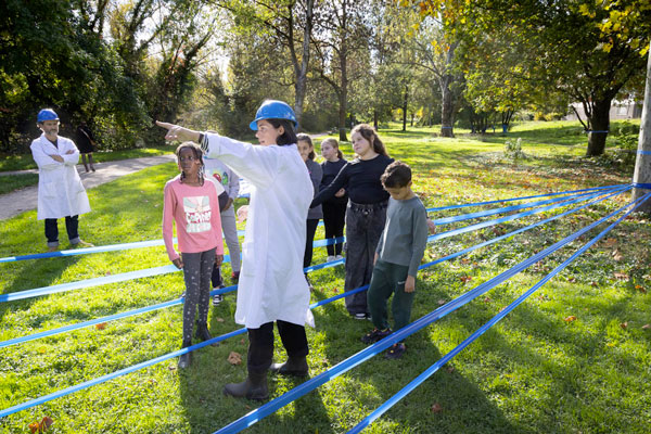 "Où iriez-vous vous réfugier en cas d’inondation ?" interroge Léa Marzloff, responsable du développement à l’ONG Bleu Versant. Devant elle, dans le Parc naturel urbain III-Bruche, un groupe d’écoliers du quartier de la Montagne-Verte se prête au jeu : "Sur le camion",  décide l’un d’entre eux. "Dans l’immeuble là-bas", préfère une autre.