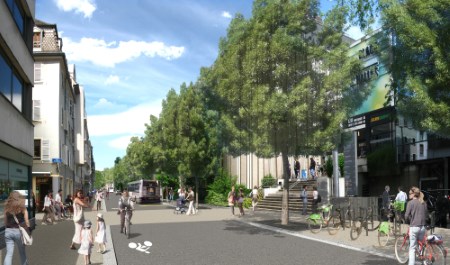 - Redistribuer les espaces pour les différents usagers par la rationalisation et la réorganisation de la circulation automobile et des espaces piétons,