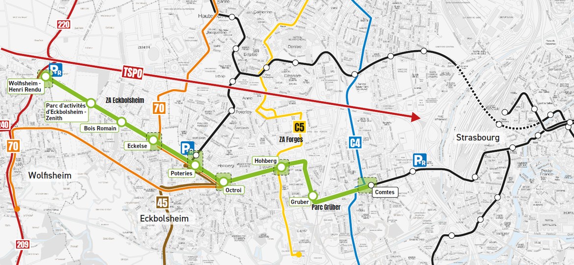 Après 2 ans de travaux l’extension de la ligne F vers l’ouest de l’agglomération est mise en service. Les 8 nouvelles stations de la ligne F du tram desserviront des zones d’activités, des lieux sportifs, des espaces verts et de loisirs ainsi que le Zénith de Strasbourg Europe. La ligne offre une nouvelle solution de déplacement pour près de 20 000 habitants et 7 000 salariés. À Wolfisheim, un Parking Relais (P+R) est créé au terminus : 100 places de stationnement supplémentaires pour rejoindre le centre-ville en toute simplicité.