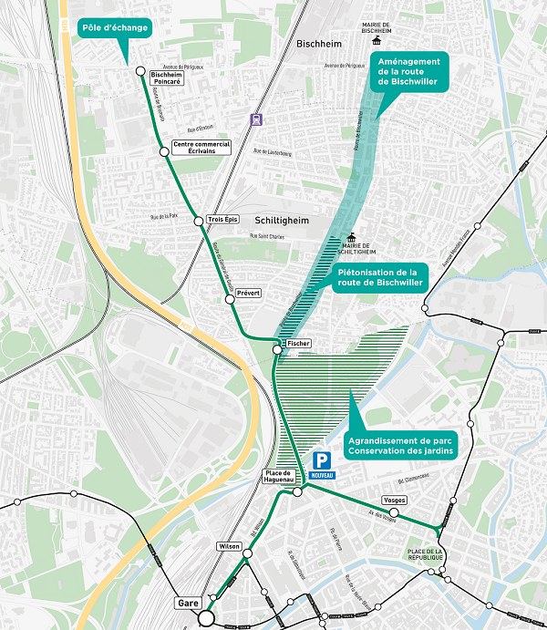 - Mieux desservir les quartiers : Schiltigheim et Bischheim font partie des communes les plus denses de la métropole. Assurer une meilleure desserte, notamment dans le cadre du projet de rénovation urbaine du quartier des Écrivains, répond à un besoin des habitants.