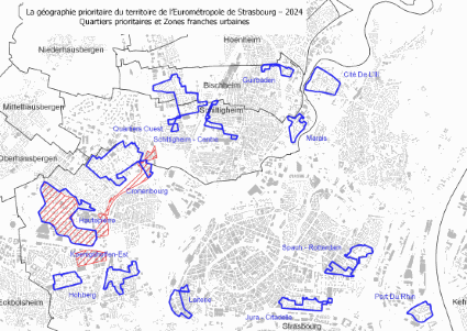 Le territoire de l’Eurométropole de Strasbourg compte deux ZFU-TE, situées dans les quartiers de Hautepierre et du Neuhof à Strasbourg. Ce dispositif s’inscrit dans la mise en œuvre des objectifs du Contrat de ville « Quartiers 2030 ».